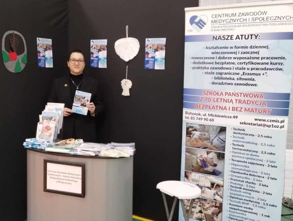 Nasze Centrum Zawodów Medycznych i Społecznych – Szkoła Policealna Województwa Podlaskiego w Białymstoku przygotowało stoisko informacyjne, na którym: