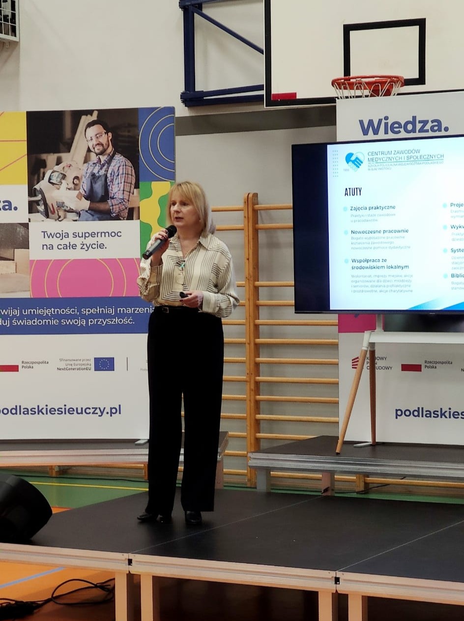 Nasze Centrum Zawodów Medycznych i Społecznych – Szkoła Policealna Województwa Podlaskiego w Białymstoku przygotowało stoisko informacyjne, na którym: