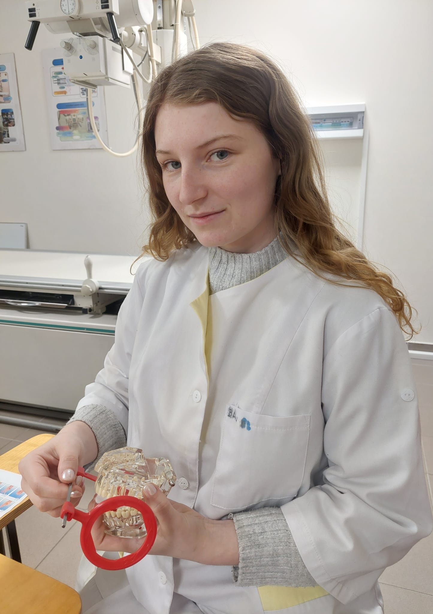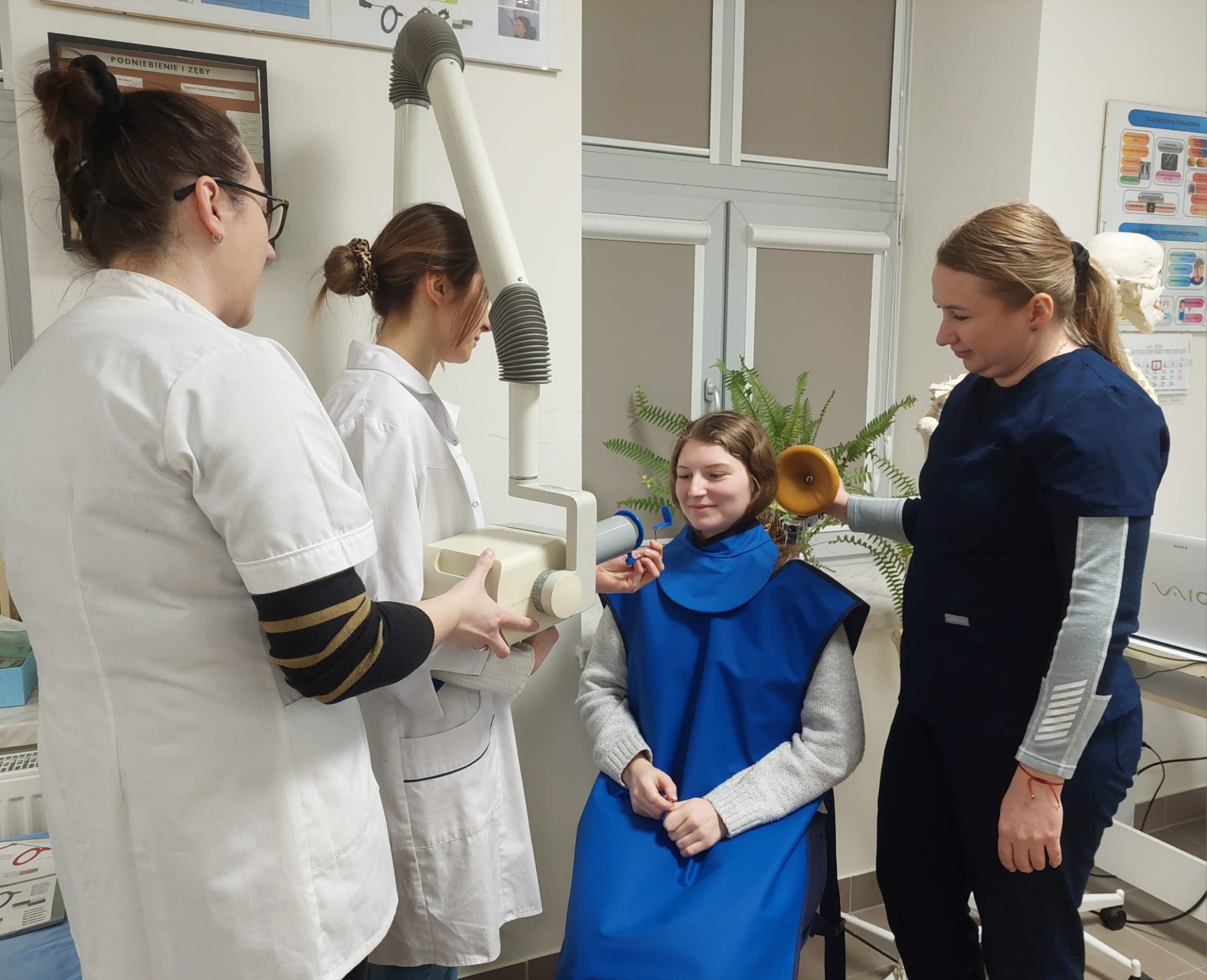 11 lutego 2026 r. w naszej szkole odbyły się praktyczne zajęcia dla słuchaczek kierunku Asystentka stomatologiczna w pracowni radiologicznej, zorganizowane w ramach współpracy międzykierunkowej. Tematem spotkania było asystowanie podczas przygotowania pacjenta do badania radiologicznego w gabinecie stomatologicznym oraz prowadzenie dokumentacji medycznej zgodnie z obowiązującymi procedurami.