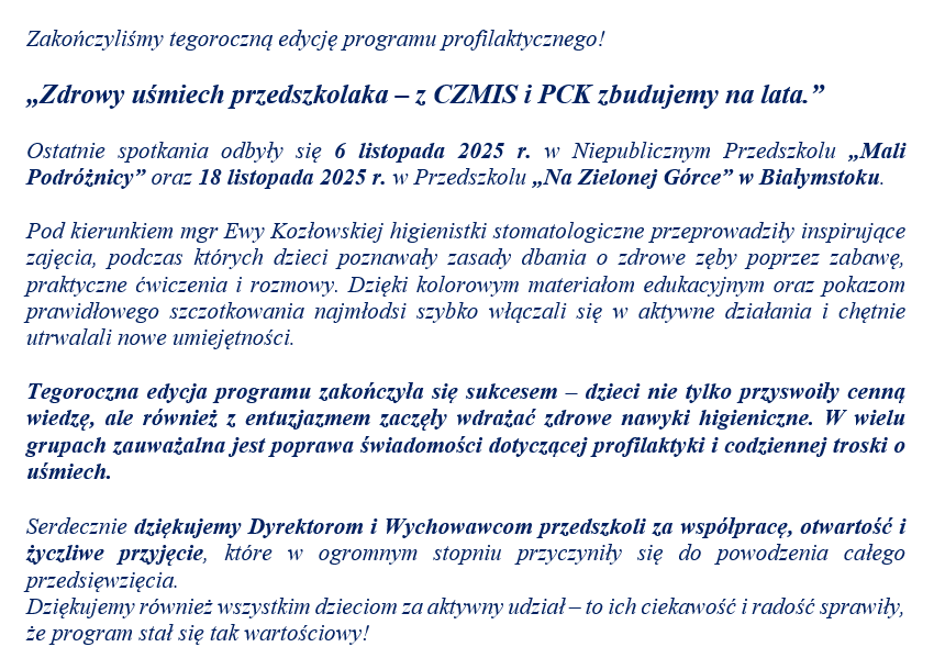 Zdrowy uśmiech przedszkolaka – z CZMIS i PCK zbudujemy na lata