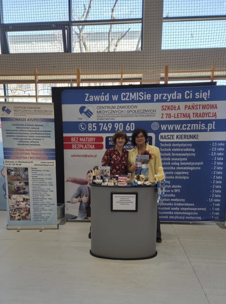 Na naszym stoisku zaprezentowaliśmy ofertę edukacyjną Centrum Zawodów Medycznych i Społecznych w Białymstoku oraz rozmawialiśmy z młodzieżą o możliwościach rozwoju i wyborze ścieżki zawodowej 👩⚕️👨⚕️